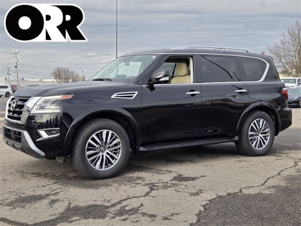 Captain's Chairs Package (2nd Row Captain's Chairs and 2nd Row Center Console w/Padded Armrest), Cargo Package, 13 Speakers, 2.937 Axle Ratio, 3rd Row Carpeted Floor Mats - Captain Seat, 3rd row seats: split-bench, 4-Wheel Disc Brakes, ABS brakes, Air Conditioning, Alloy wheels, Anti-whiplash front head restraints, Auto High-beam Headlights, Auto tilt-away steering wheel, Auto-dimming door mirrors, Auto-dimming Rear-View mirror, Auto-leveling suspension, Automatic temperature control, Brake assist, Bumpers: body-color, Delay-off headlights, Driver door bin, Driver vanity mirror, Dual front impact airbags, Dual front side impact airbags, Electronic Stability Control, Emergency communication system: NissanConnect Services, Exterior Parking Camera Rear, Four wheel independent suspension, Front anti-roll bar, Front Bucket Seats, Front Center Armrest, Front dual zone A/C, Front fog lights, Front reading lights, Fully automatic headlights, Garage door transmitter: HomeLink, Heated door mirrors, Heated Front Bucket Seats, Heated front seats, Heated steering wheel, HVAC memory, Illuminated entry, Illuminated Kick Plates, Knee airbag, Leather Shift Knob, Leather steering wheel, Leather-Appointed Seat Trim, Low tire pressure warning, Memory seat, Navigation System, Occupant sensing airbag, Outside temperature display, Overhead airbag, Overhead console, Panic alarm, Passenger door bin, Passenger vanity mirror, Power door mirrors, Power driver seat, Power Liftgate, Power moonroof, Power passenger seat, Power steering, Power windows, Radio: NissanConnect w/SiriusXM, Rear air conditioning, Rear anti-roll bar, Rear reading lights, Rear seat center armrest, Rear window defroster, Rear window wiper, Reclining 3rd row seat, Remote keyless entry, Roof Rail Cross Bars - Silver, Security system, SiriusXM, Speed control, Speed-sensing steering, Speed-Sensitive Wipers, Split folding rear seat, Spoiler, Steering wheel memory, Steering wheel mounted audio controls, Tachometer, Telescoping steering wheel, Tilt steering wheel, Traction control, Trip computer, Turn signal indicator mirrors, Variably intermittent wipers, Voltmeter, and Wheels: 20" x 8J Painted Alloy.