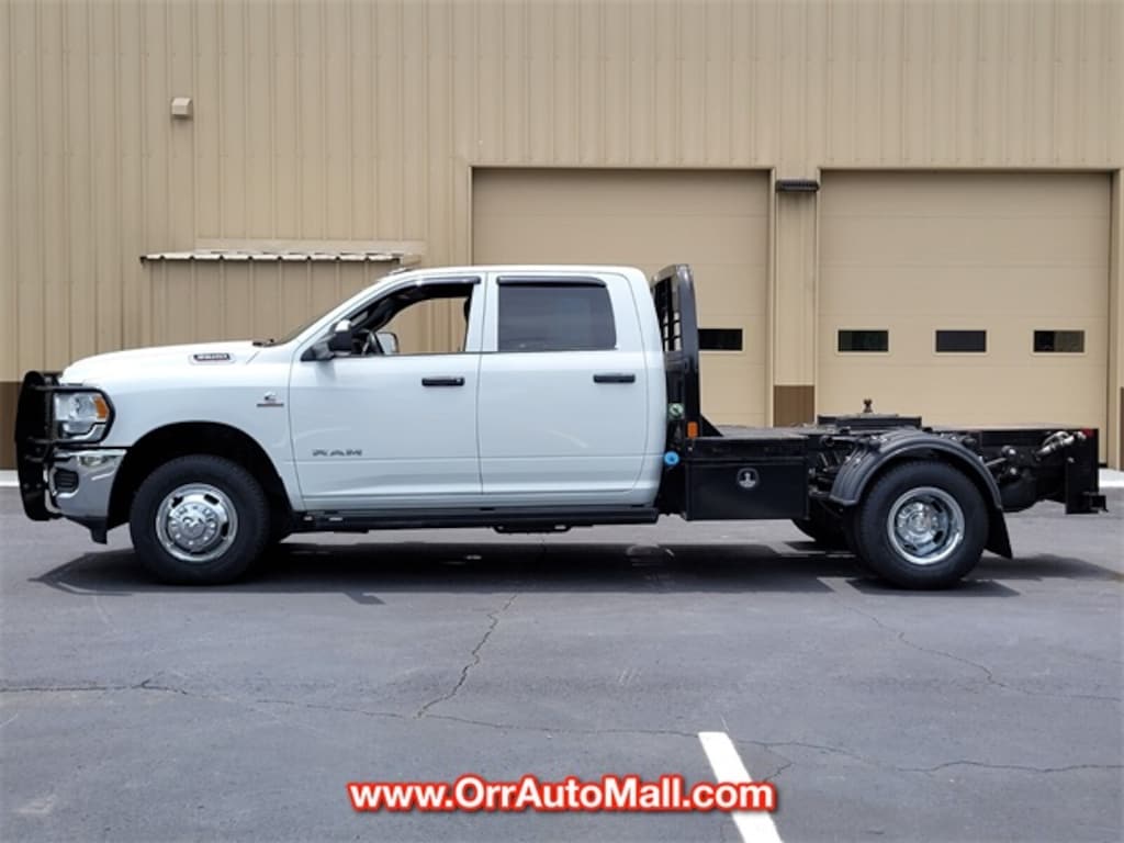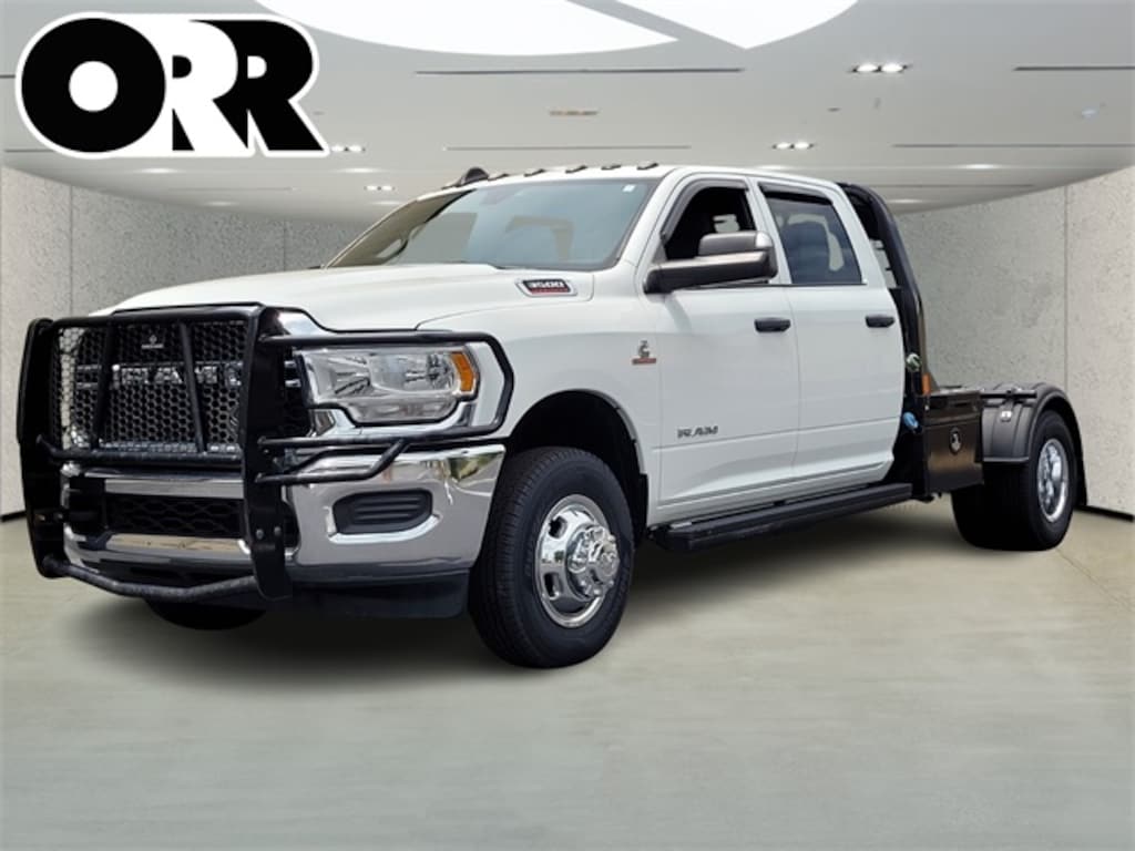 Chrome Appearance Group (Bright Front Bumper, Bright Wheel Skins, Center Hub, Chrome Grille Surround, and Matte Black Mesh Grille w/Chrome), Heavy Duty Snow Plow Prep Group, Quick Order Package 2YA Tradesman (Black Exterior Mirrors, Black Key Fob, Door Sill Scuff Pads, Exterior Mirrors Courtesy Lamps, Exterior Mirrors w/Heating Element, Exterior Mirrors w/Supplemental Signals, Glove Box, Halogen Quad Headlamps, Map/Courtesy Lamp, Matte Black Grille Surround, Mirror Running Lights, Overhead Console, Overhead Cupholder Lamp, Power Black Trailer Tow Mirrors, Rear Dome Lamp, Trailer Tow Mirrors, and Urethane Shift Control), 102 mph Maximum Speed, 11.50" Dual Wheels Rear Axle, 2 Way Rear Headrest Seat, 220 Amp Alternator, 3.73 Axle Ratio, 4-Wheel Disc Brakes, 40/20/40 Split Bench Seat, 4G LTE Wi-Fi Hot Spot, 52 & 22 Gallon Dual Fuel Tanks (DISC), 6 Speakers, 6000# Front Axle w/Hub Ext, 8.4" Touchscreen Display, ABS brakes, Air Conditioning, All R1 Low Radios, All Radio-Equipped Vehicles, Apple CarPlay, Bluetooth Handsfree Phone & Audio, Cluster 3.5" TFT Color Display, Compass, Connectivity - US/Canada, Delay-off headlights, Driver door bin, Dual front impact airbags, Dual Rear Wheels, Electric Shift-On-The-Fly Transfer Case, Electronic Stability Control, Emergency communication system: SiriusXM Guardian, For Details, Visit DriveUconnect.com, Front anti-roll bar, Front Armrest w/Cupholders, Front Center Armrest w/Storage, Front License Plate Bracket, Fully automatic headlights, Global Telematics Box Module (TBM), Google Android Auto, GPS Antenna Input, HD Vinyl 40/20/40 Split Bench Seat, Heated door mirrors, Integrated Center Stack Radio, Integrated Voice Command w/Bluetooth, Manual Adjust 4-Way Driver Seat, Manual Adjust 4-Way Front Passenger Seat, Occupant sensing airbag, Outside temperature display, Overhead console, ParkView Rear Back-Up Camera, Passenger door bin, Passenger vanity mirror, Power door mirrors, Power steering, Power windows, Radio data system, Radio: Uconnect 3 w/5" Display, Radio: Uconnect 5 W w/8.4" Display, Rear anti-roll bar, Rear Folding Seat, SiriusXM Radio Service, SiriusXM Satellite Radio, Speed control, Tachometer, Temperature & Compass Gauge, Tilt steering wheel, Traction control, Trailer Brake Control, Trailer Light Check, Turn signal indicator mirrors, Variably intermittent wipers, Voltmeter, Wheels: 17" x 6.0" Steel Chrome Clad, and Wheels: 18" x 8.0" SteeL.